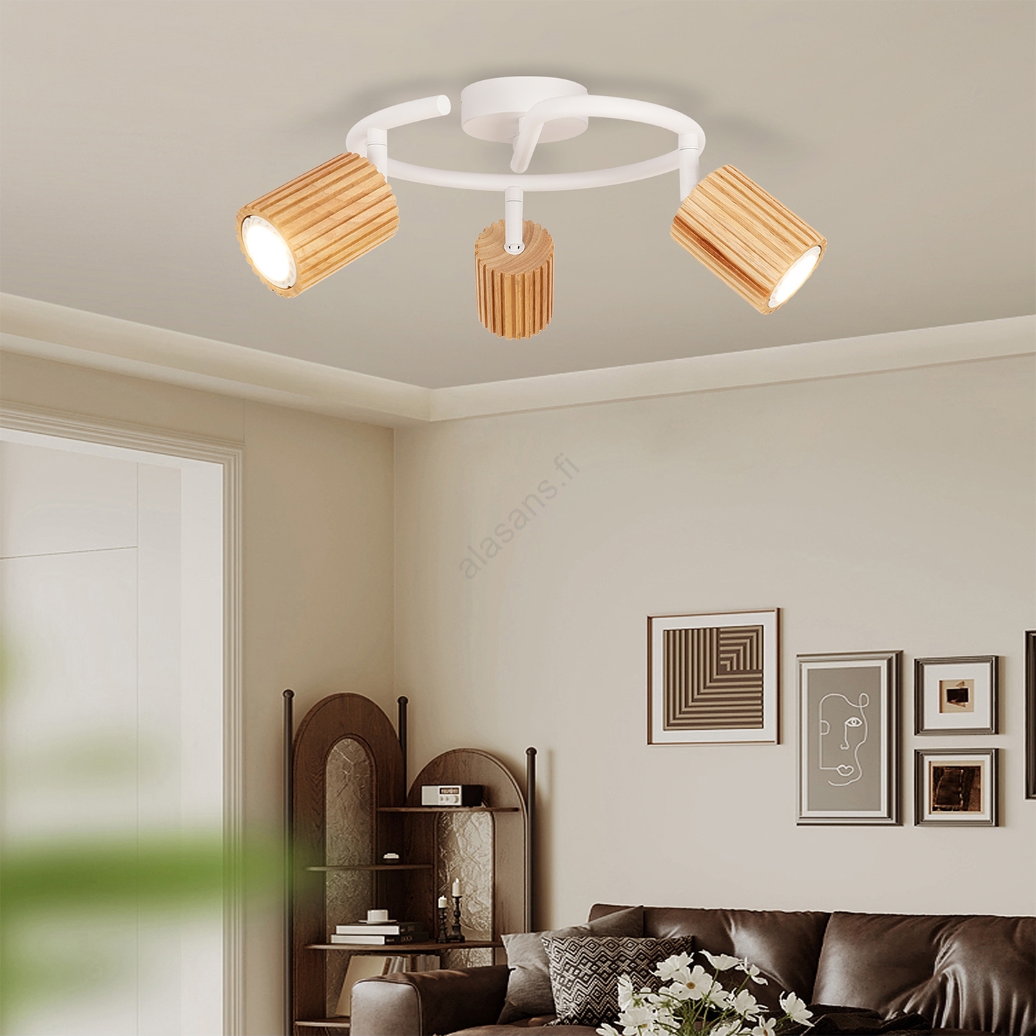 Brilagi - Spottivalaisin MODERN WOOD 3xGU10/8W/230V kumipuu/valkoinen | Alasans