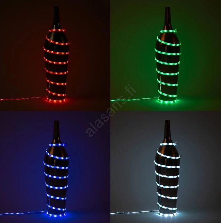• Pakkauksessa: 5 m LED-nauha, kaukosäädin, muuntaja, 1,5 m johto ja kiinnitysklipsi.