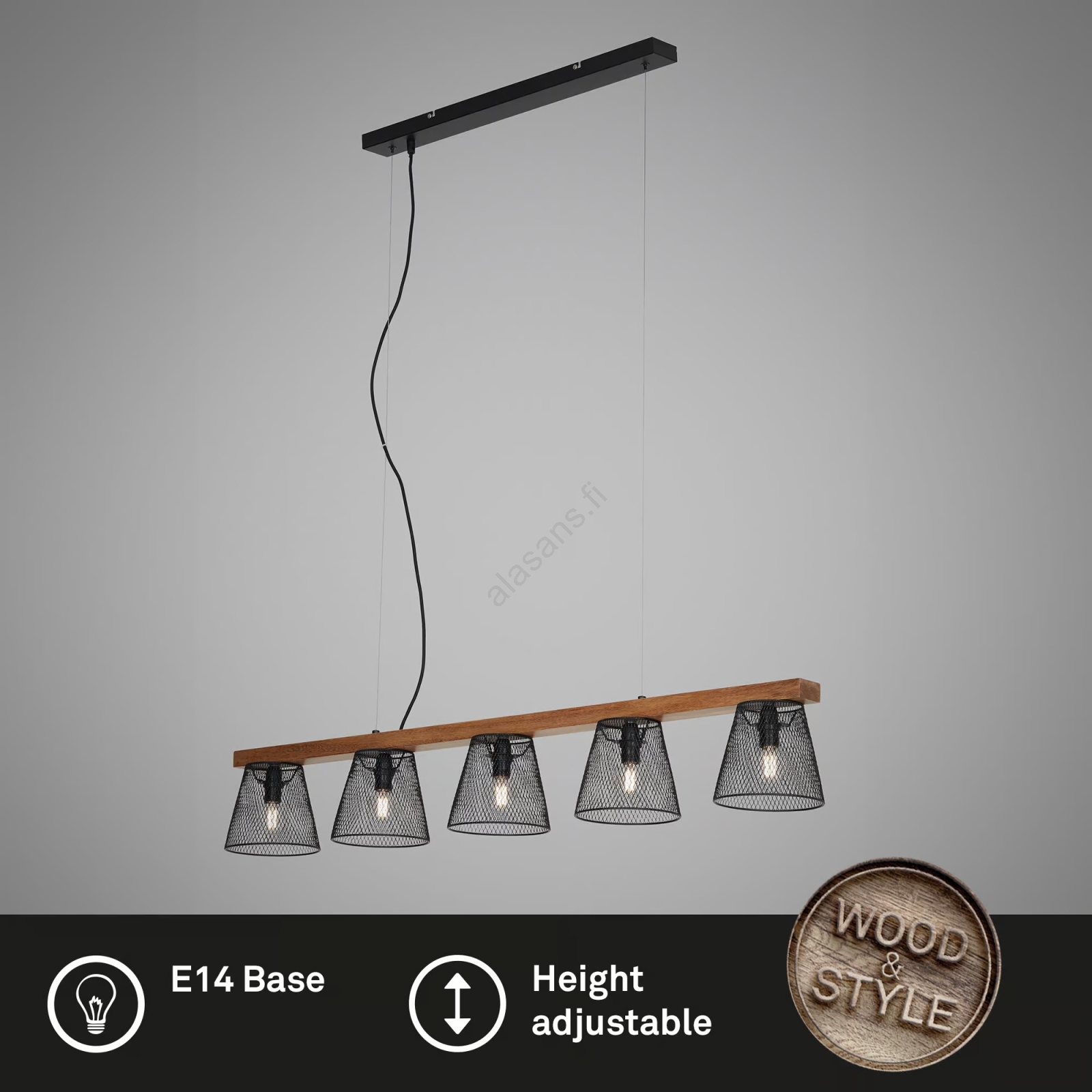 Briloner 4077-055 - Riippuvalaisin kaapelilla WOOD & STYLE 5xE14/25W/230V | Alasans