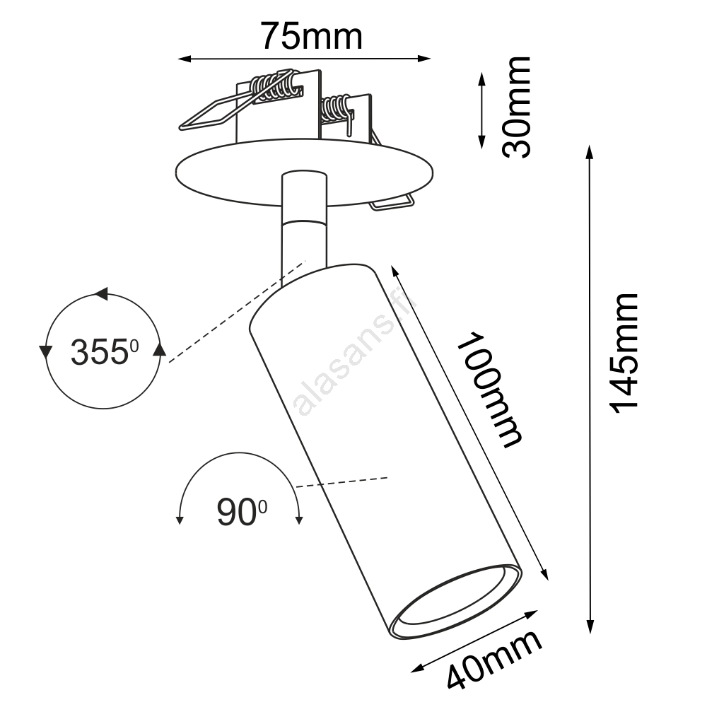 Brosline 3252 - Kattoon upotettava kohdevalaisin ACE 1xGU10/4W/230V musta | Alasans