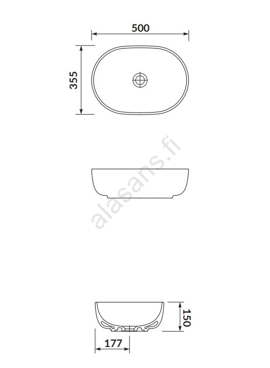 • Moderni ja tyylikäs pesuallas ilman ylivuotoa.