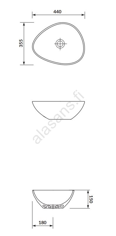 • Moderni ja tyylikäs pesuallas ilman ylivuotoa.