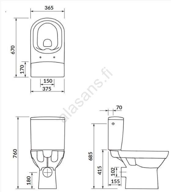 • Lattiamallinen WC, valmistettu korkealaatuisesta keramiikasta.