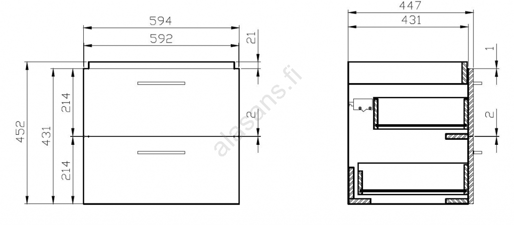 • Kaapin etulevy ja runko on valmistettu 16 mm lastulevystä, jossa on valkoinen lakka.