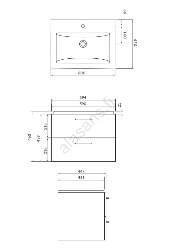 • Posliiniallas on klassisen suorakaiteen muotoinen, jossa on hana-aukko ja ylivuoto.
