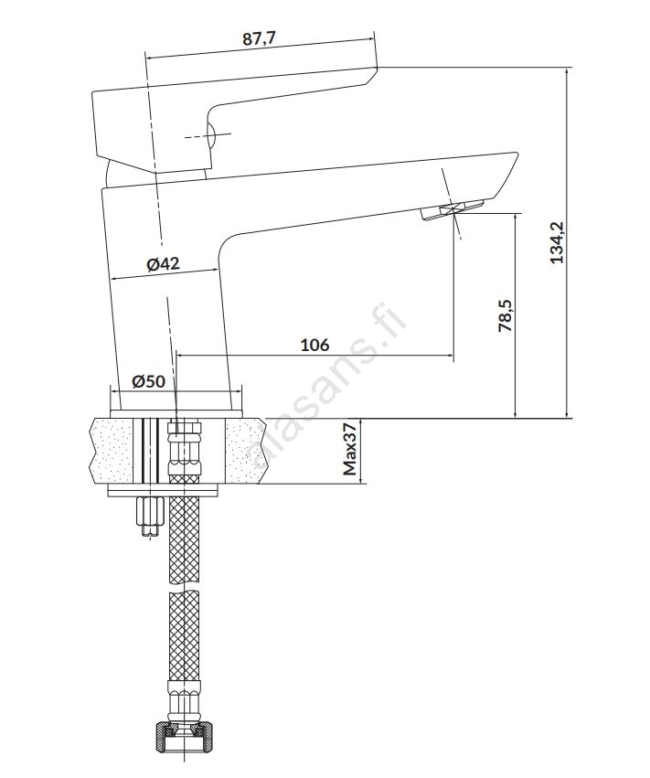 • Tämä yksikahvainen pesuallashana on tyylikäs lisä jokaiseen kotiin.
