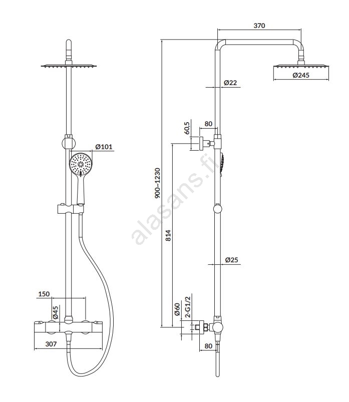 • Setti sisältää 150 cm pitkän suihkuletkun.