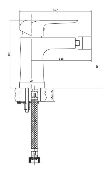 • Tämä yksikahvainen bidet-sekoitin on tyylikäs lisä jokaiseen kylpyhuoneeseen.
