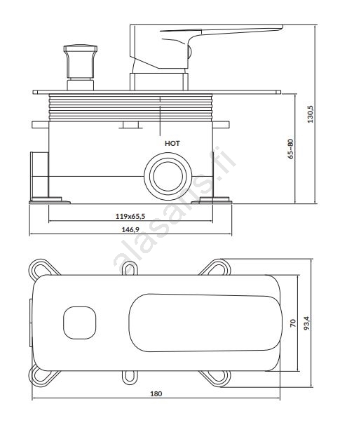 • Yhden vivun suihkusekoitin upotettavaa asennusta varten.