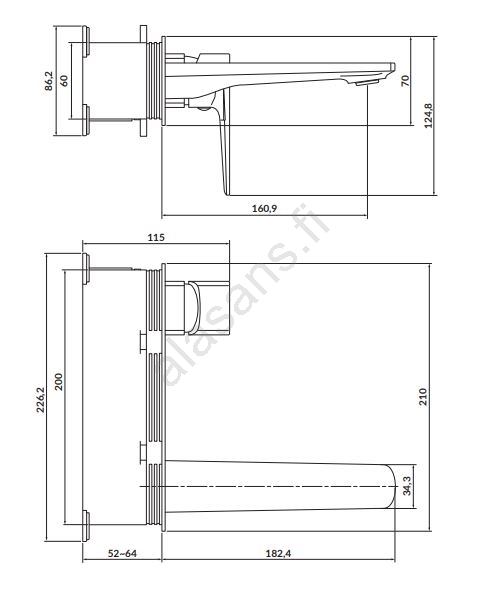 • Seinään asennettava pesuallashana upotettavalla asennuksella.