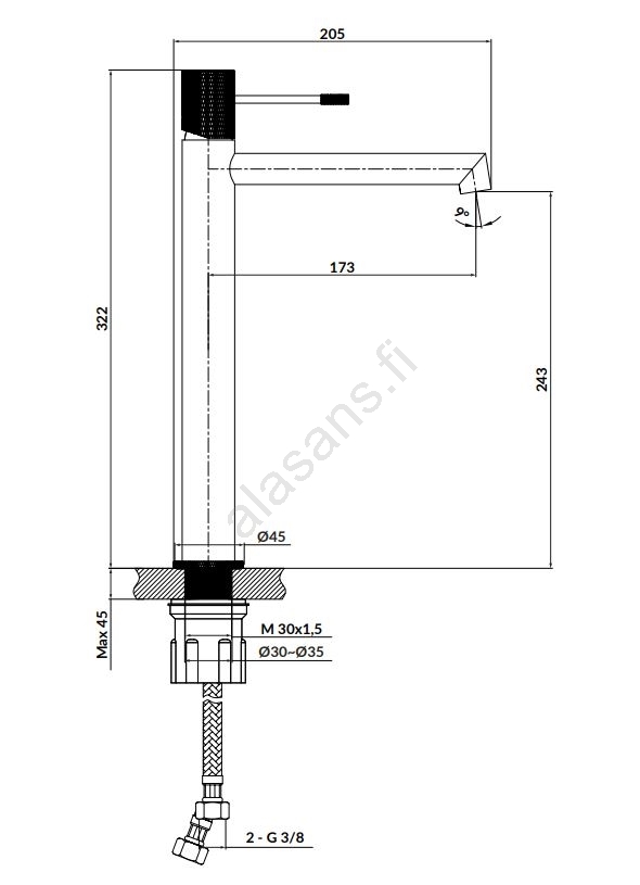 Cersanit S951-592 - Altaan hana ZEN 32,2 cm kiiltävä kromi | Alasans