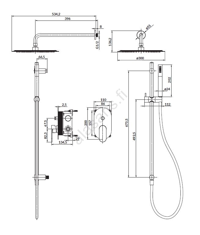 • ruostumattomasta teräksestä valmistettu SLIM-suihkupää (0,2 cm) 25 cm halkaisijalla sadetussuihkulla,