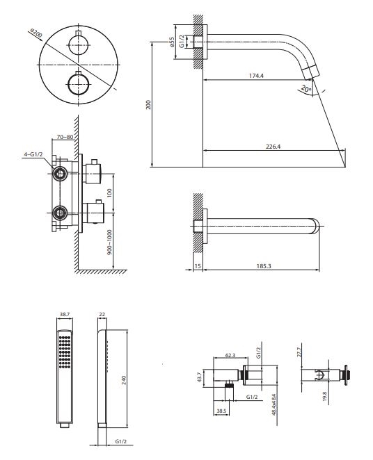 • Tämä kylpyammesetti termostaattisella upotettavalla hanalla on tyylikäs lisä jokaiseen kylpyhuoneeseen.