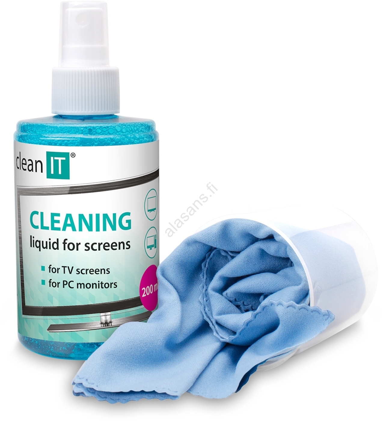 CLEAN IT CL-180 - Näytönpuhdistusaine mikrokuituliinalla 200 ml | Alasans