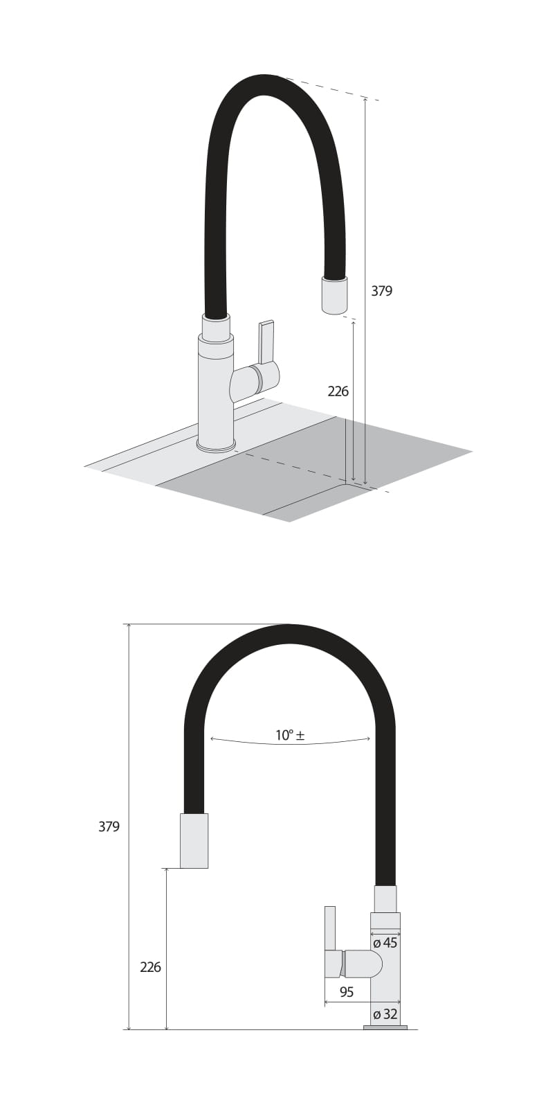 Concept BDC7138 - Keittiöhana joustavalla juoksuputkella, kiiltävä kromi/musta | Alasans