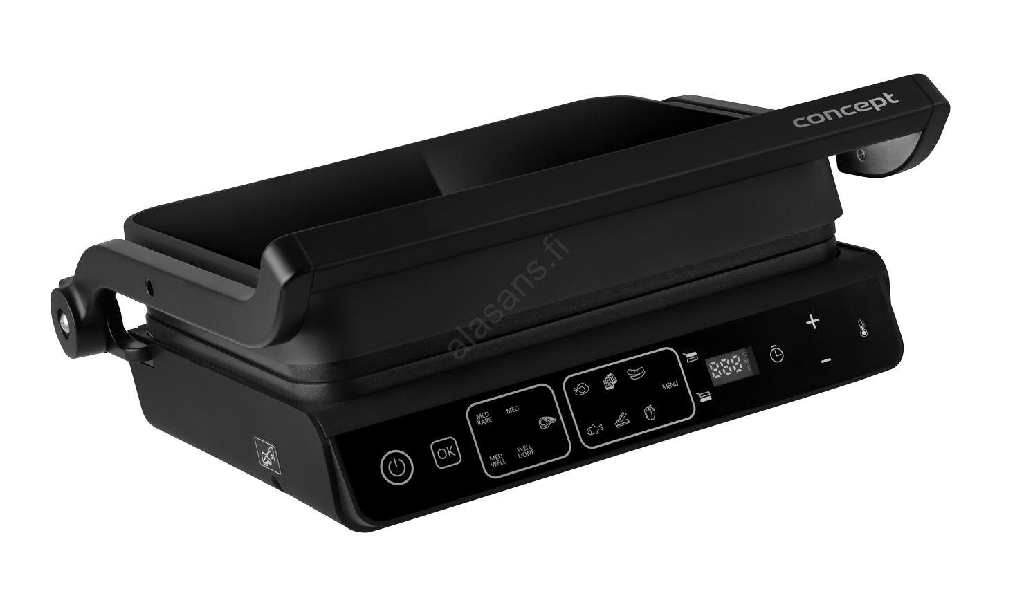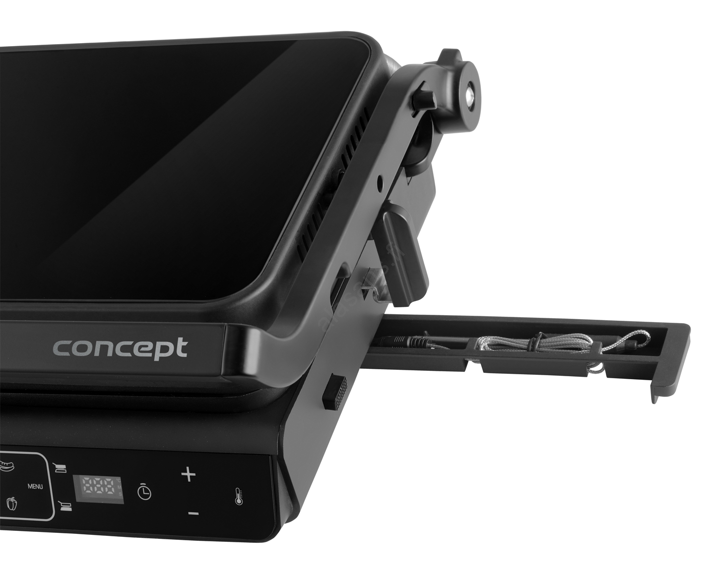 Concept ge3600 - Kontaktigrilli lämpötila-anturin kanssa GLASS 2000W/230V musta | Alasans