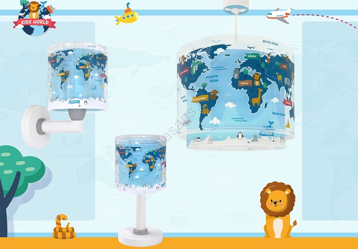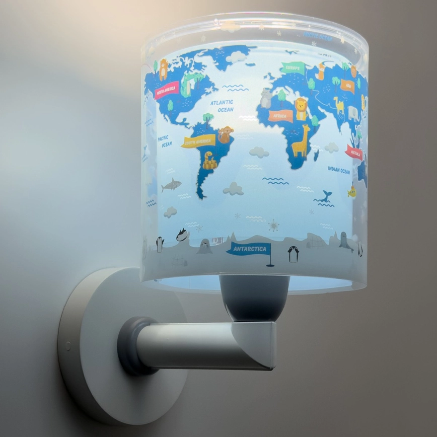 • Dalber 40679 - Lasten seinävalaisin WORLD 1xE27/15W/230V sininen
