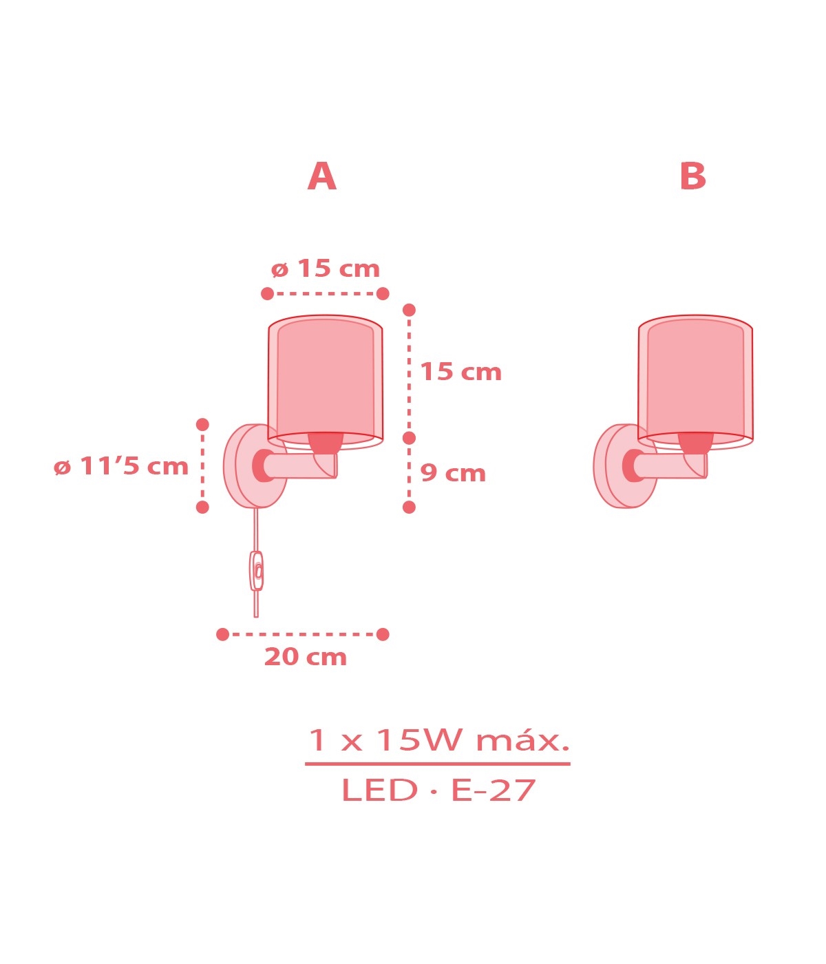 • Dalber 60919 - Lasten seinävalaisin PRINCESS DANCE 1xE27/15W/230V, vaaleanpunainen