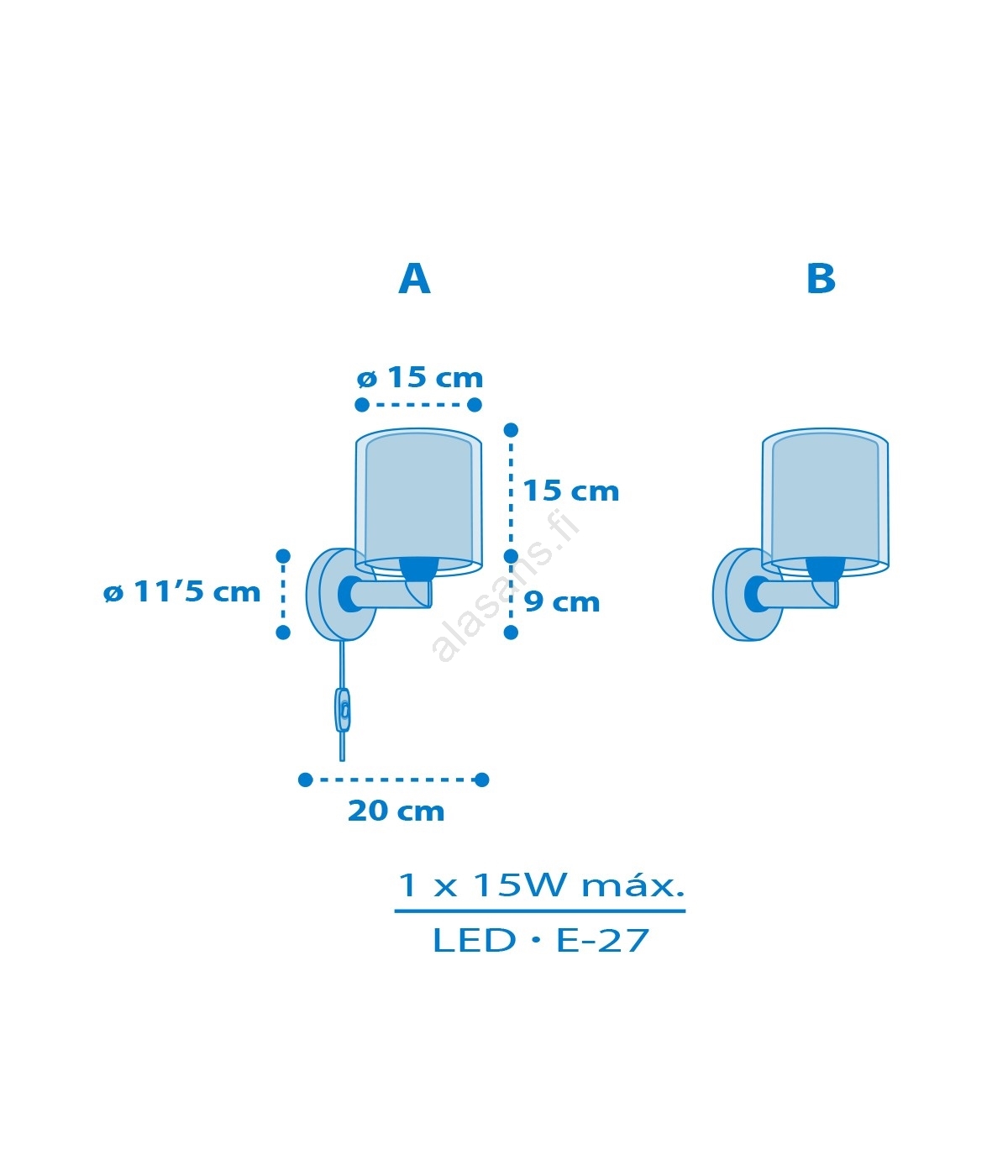 Dalber 41579T - Lasten seinävalaisin BABY TEDDY 1xE27/15W/230V sininen | Alasans
