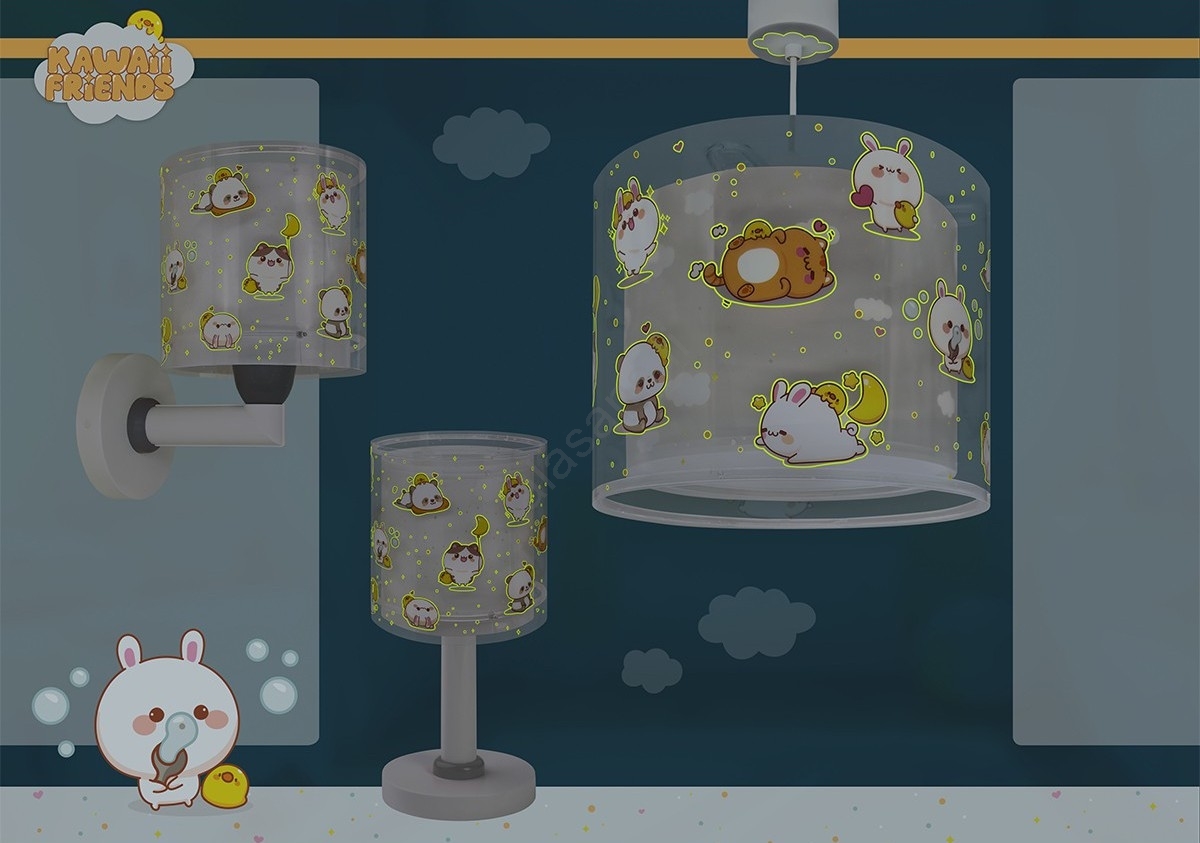 • Dalber 41769E - Lasten seinävalaisin KAWAII FRIENDS 1xE27/15W/230V harmaa