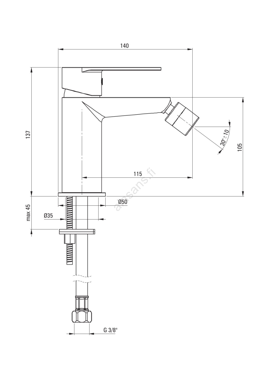 • Toimitukseen sisältyvät 45 cm liitäntäletkut.