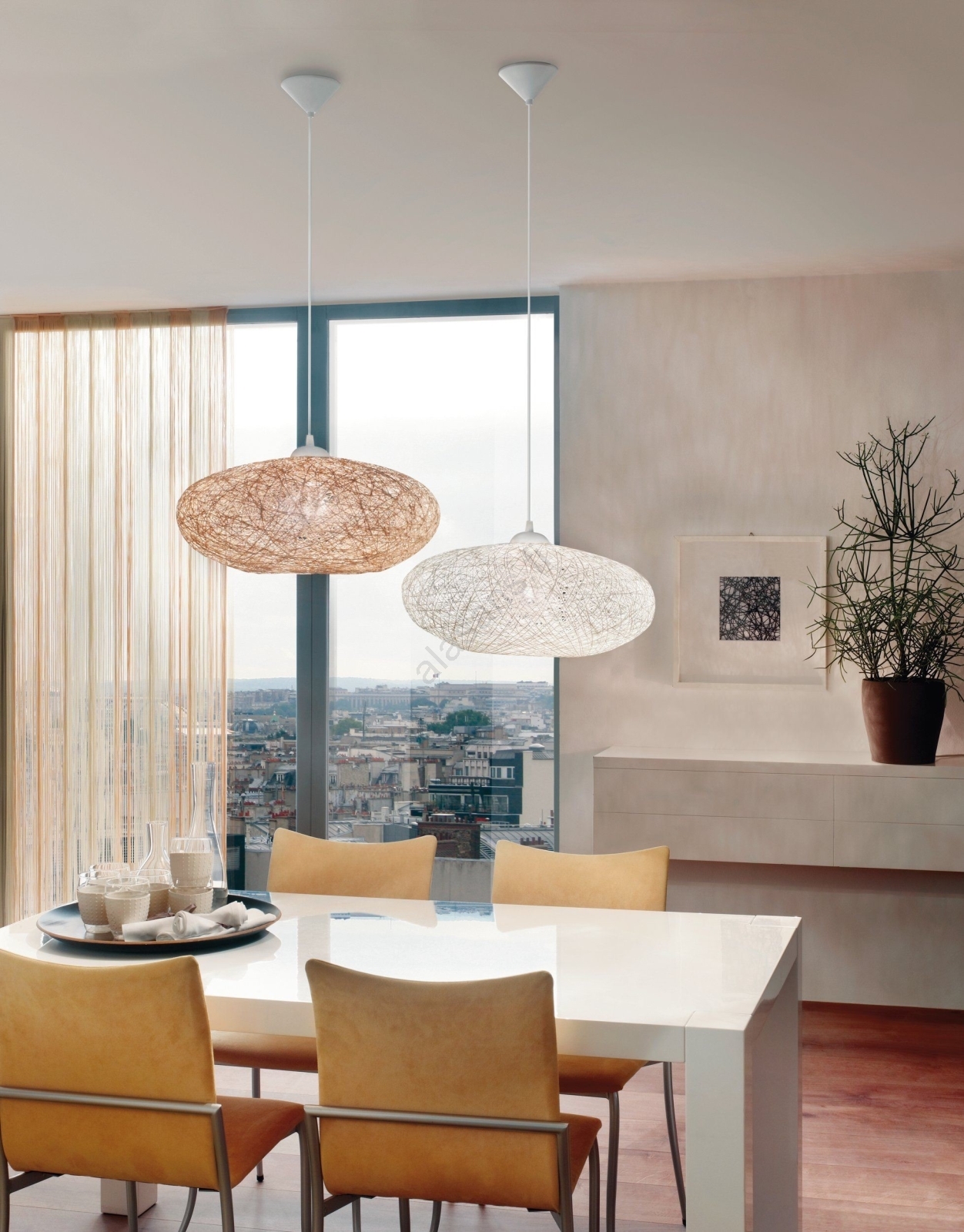 • Moderni kattovalaisin valkoisella tekstiilivarjostimella.