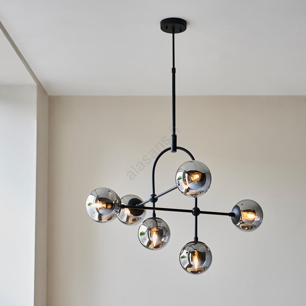 Endon 106661 - ONTARIO kattokruunu tangolla 6xE14/7W/230V musta/savunmusta | Alasans