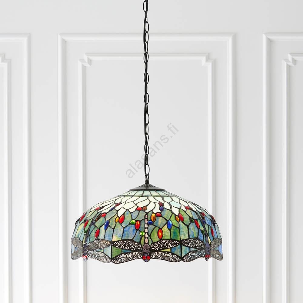 Endon 66148 - ketjulla roikkuva Tiffany DRAGONFLY - kattokruunu 3xE27/60W/230V, halkaisija 50 cm