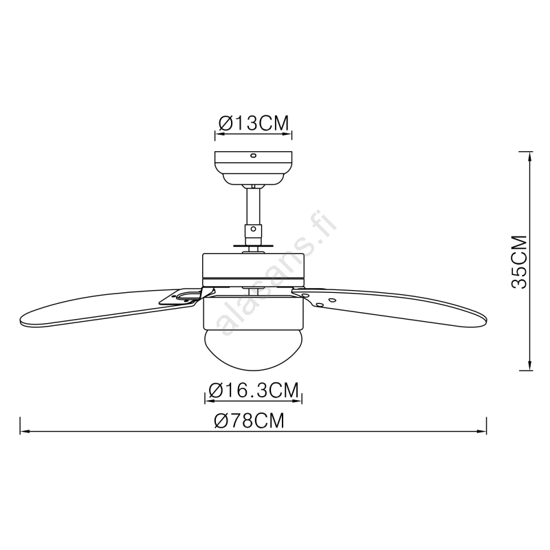 Globo 03801 - RIVALDO-kattotuuletin 1xE14/60W/230V | Alasans