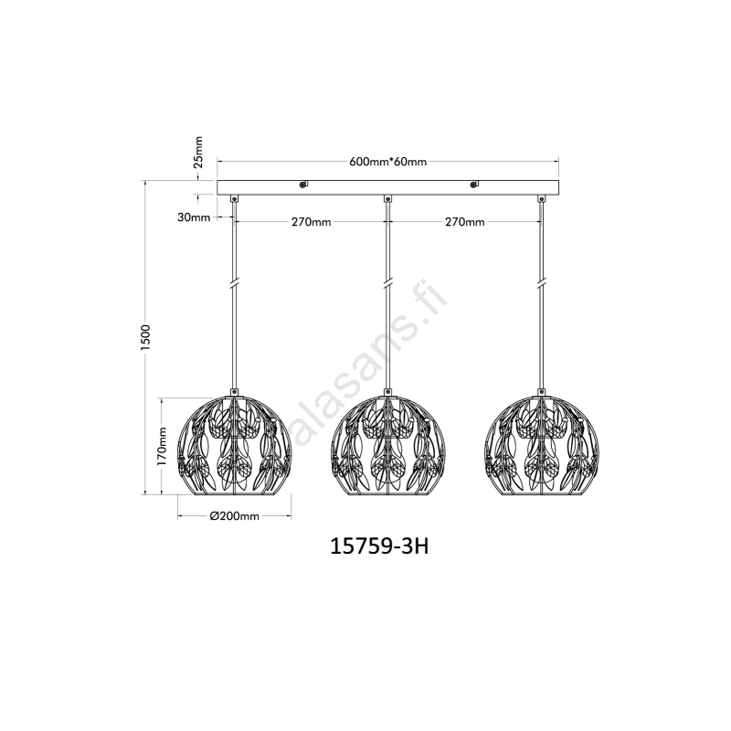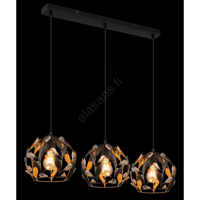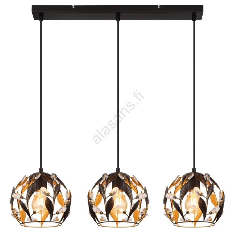 Globo - Riippuvalaisin vaijerilla 3xE27/40W/230V merkitsee kaunista ja toimivaa muotoilua.  Valoon sopii polttimo, jossa on E27-kanta. Täältä voit ostaa myös muita lamppuja edulliseen hintaan. Mielenkiintoinen lisä kotiisi.