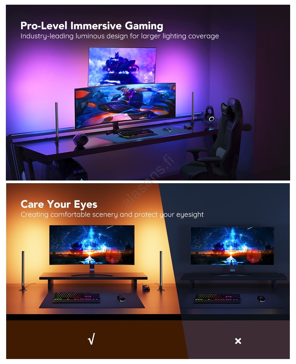 • Modernit valopaneelit pelaajille ja elokuvafaneille – luovat henkeäsalpaavan tunnelman television tai monitorin viereen.