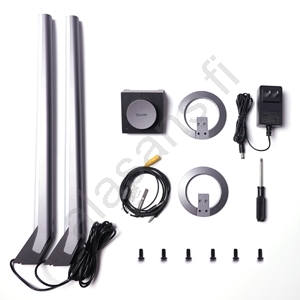 • Pakkauksen sisältö: 2× valopaneelia, 1× Smart Dual -kaukosäädin, 1× verkkovirtasovitin, 1× 3,5 mm liitäntäkaapeli.