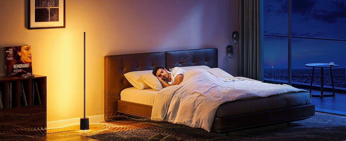• Minimalistinen lattiavalaisin, jossa on BT-kaiutin, tarjoten täydellisen visuaalisen elämyksen ja erinomaisen äänenlaadun.