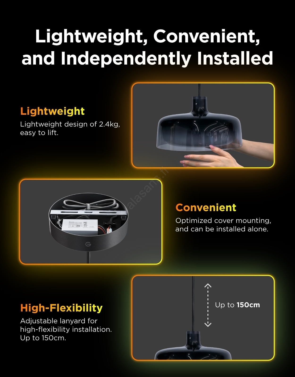 • Kolmevyöhykkeinen pyöreä valaistus tarjoaa 360°-efektit, jokainen vyöhyke on ohjattavissa erikseen — ihanteellinen tyylikkääseen olohuoneeseen, pelitilaan tai muotoiltuun ruokailutilaan.
