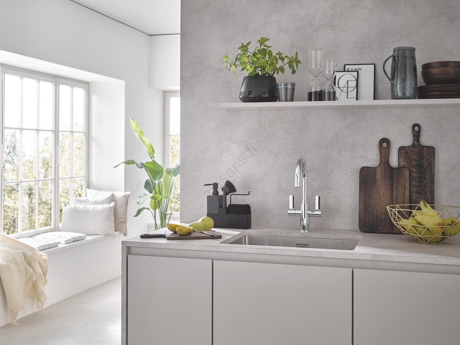 • GROHE K700U -ruostumaton keittiöallas yhdistää modernin muotoilun ja pitkän käyttöiän.