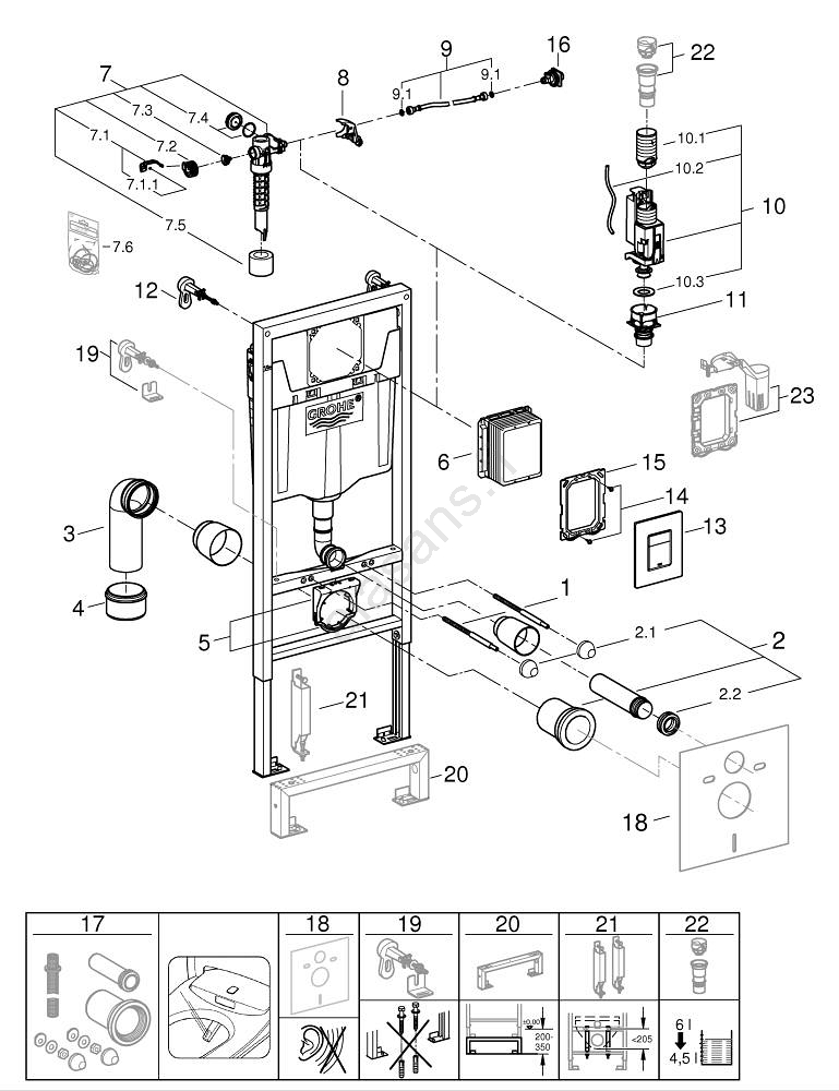 • 3-in-1-paketti täydelliseen seinälle asennettavan WC-järjestelmän asennukseen.