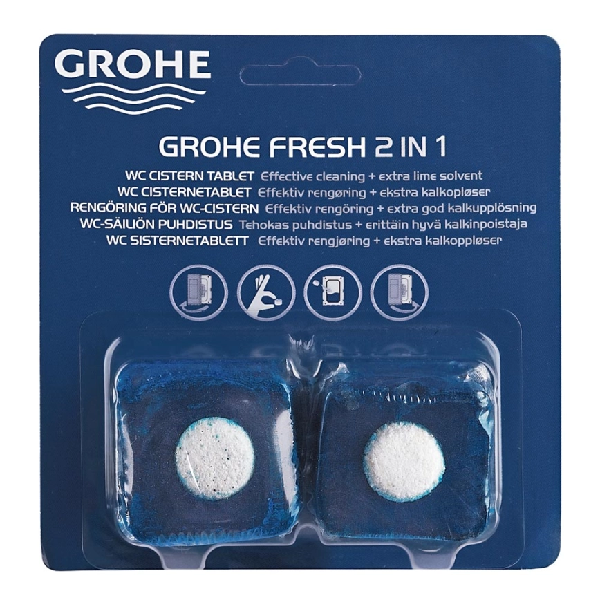 • GROHE Fresh -wc-tabletit varmistavat raikkaan ja puhtaan WC:n jokaisen huuhtelun jälkeen.