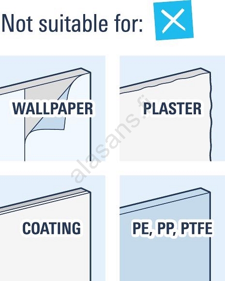 • Voidaan asentaa poraamalla (ruuvit ja tulpat sisältyvät toimitukseen) tai liimaamalla GROHE QuickGlue -liimalla (myydään erikseen).
