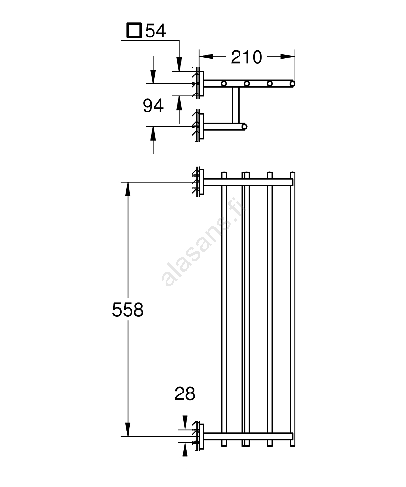 • Kokonaispituus 600 mm ja käyttökelpainen pituus 558 mm tarjoavat runsaasti tilaa pyyhkeillesi.