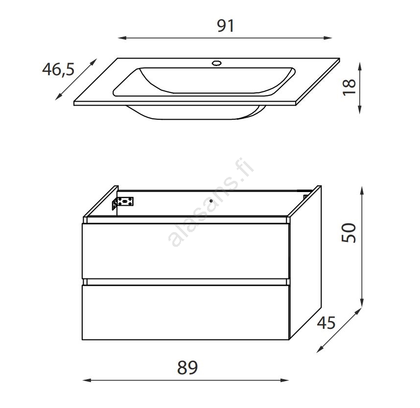• Kaapin mukana toimitetaan keraaminen pesuallas.