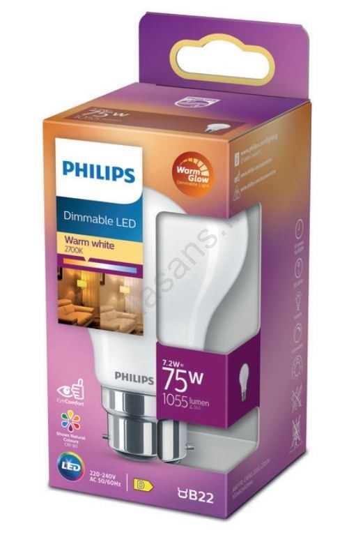 Himmennettävä LED-polttimo Philips Warm Glow B22/7,2W/230V 2200-2700K CRI 90 | Alasans