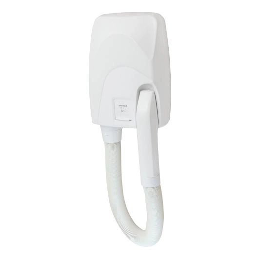 • Seinäkiinnitettävä hiustenkuivaaja – täydellinen hotellien kylpyhuoneisiin.