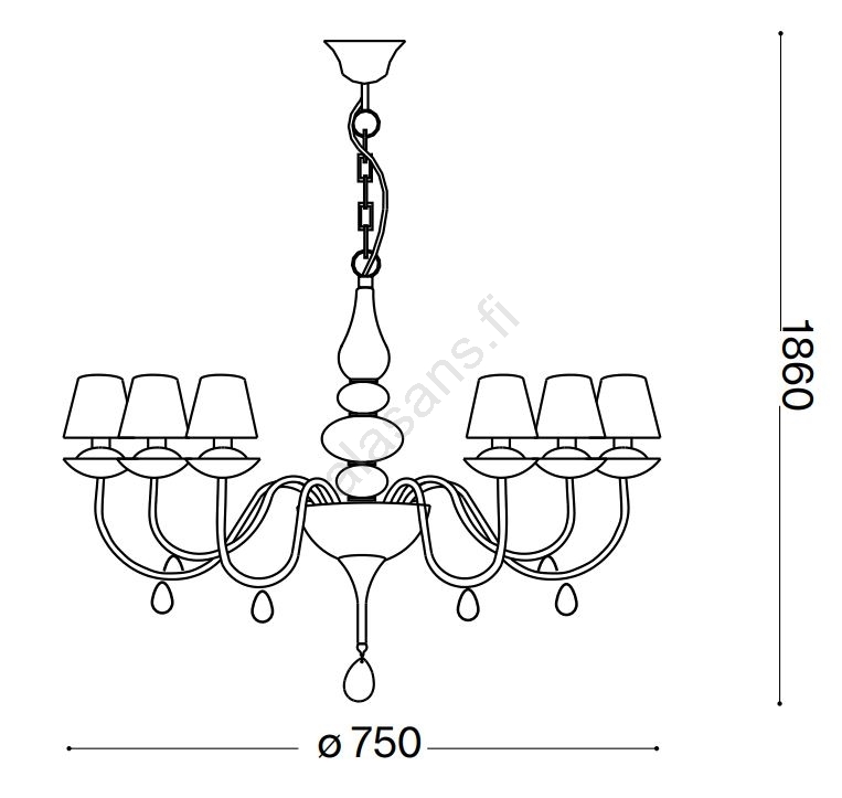 Ideal Lux - Kattokruunu ketjussa BLANCHE 6xE14/40W/230V halkaisija 75 cm valkoinen | Alasans
