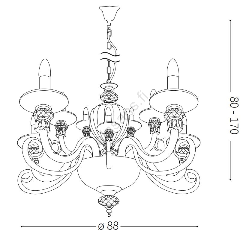 Ideal Lux - Kattokruunu johdossa BARONET 15xE14/40W/230V merkitsee kaunista ja toimivaa muotoilua.  Valoon sopii polttimo, jossa on E14-kanta. Täältä voit ostaa myös muita lamppuja edulliseen hintaan. Mielenkiintoinen lisä kotiisi.