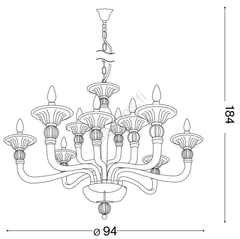 Ideal Lux - Kattokruunu ketjussa DANIELI 12xE14/40W/230V halkaisija 94 cm läpinäkyvä merkitsee kaunista ja toimivaa muotoilua.  Valoon sopii polttimo, jossa on E14-kanta. Täältä voit ostaa myös muita lamppuja edulliseen hintaan. Mielenkiintoinen lisä kotiisi.