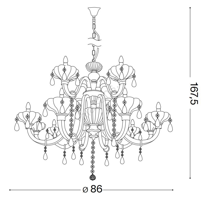 Ideal Lux - Kristalli-ketjukattokruunu CONTINENTAL 12xE14/40W/230V halkaisija 86cm läpinäkyvä | Alas