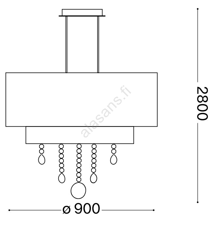 • Metallinen jalusta täydentyy kahdella toisiinsa sopivalla PVC-kalvosta valmistetulla varjostimella, joissa on hienoja valkoisia metallilankoja ja hiotusta kristallista valmistetut koristehelmet.