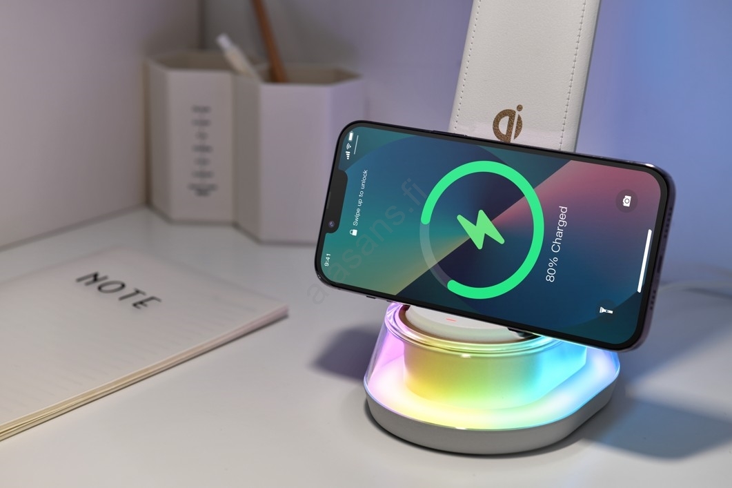 • Langaton Qi-lataus on integroitu lampun runkoon.