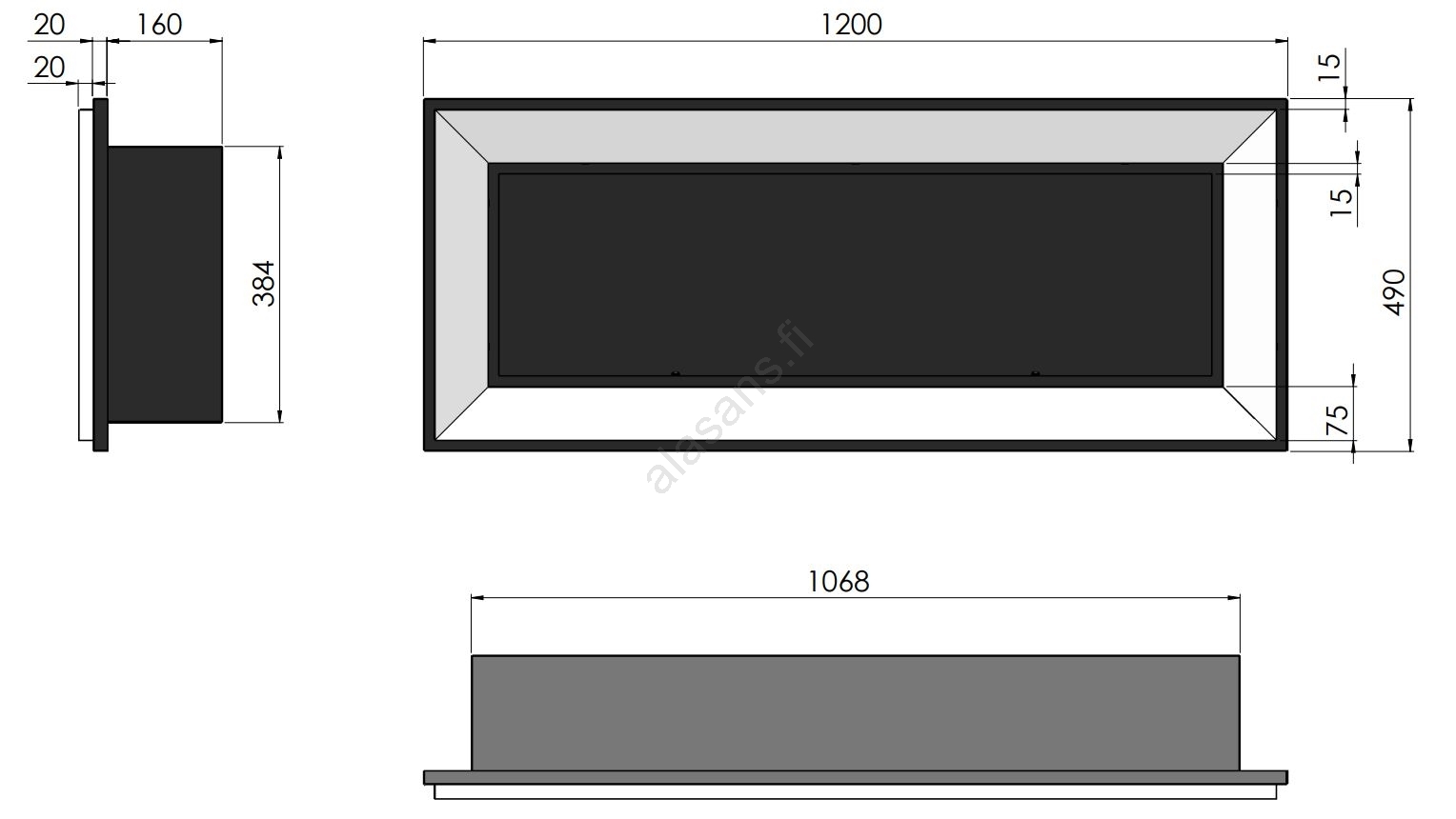 InFire - Sisäänrakennettu BIO takka 49x120 cm 3kW musta | Alasans