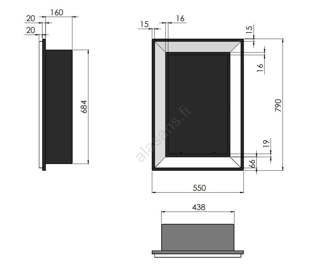 • Yksinkertainen moderni biotakka, joka voidaan ripustaa seinälle tai sijoittaa valmiiseen syvennykseen.